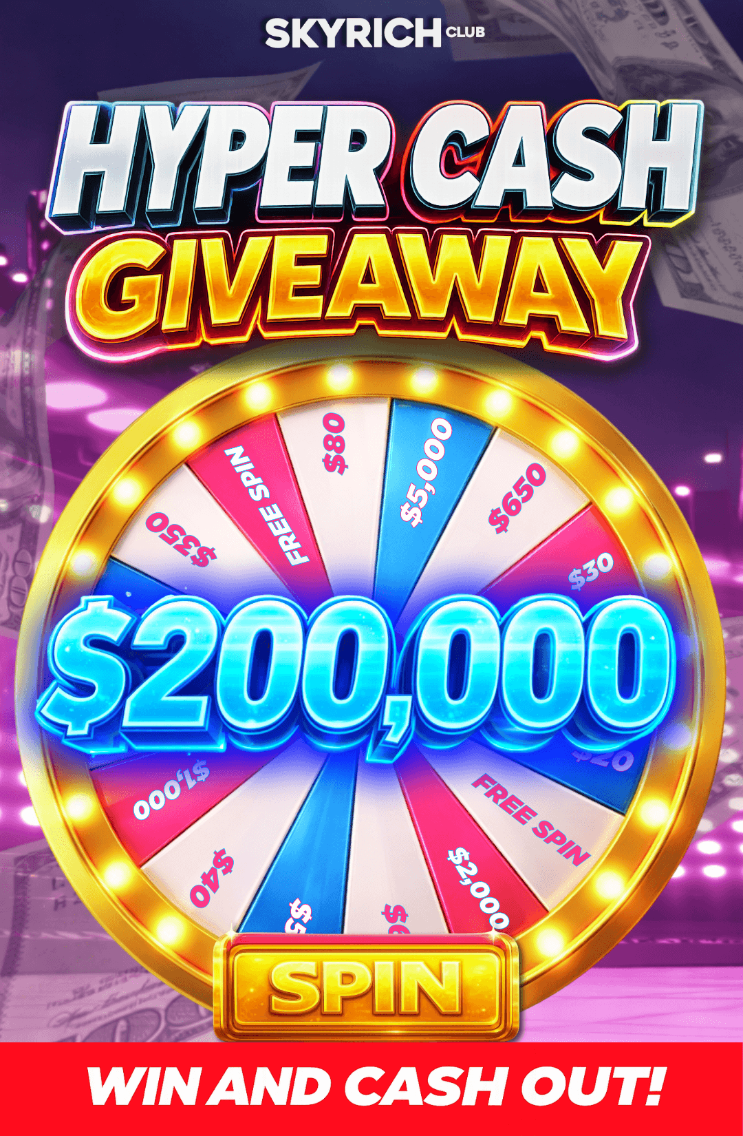 Each package includes exclusive access to Skyrich Club and Free Spins to enter our giveaways for a chance to win real cash and prizes.